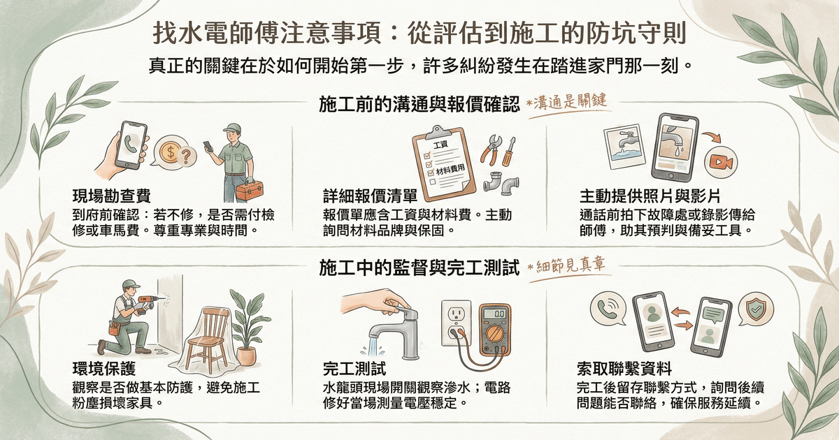 當你聯絡上師傅後,真正的關鍵在於「如何開始第一步」。許多糾紛都發生在師傅踏進家門的那一刻。